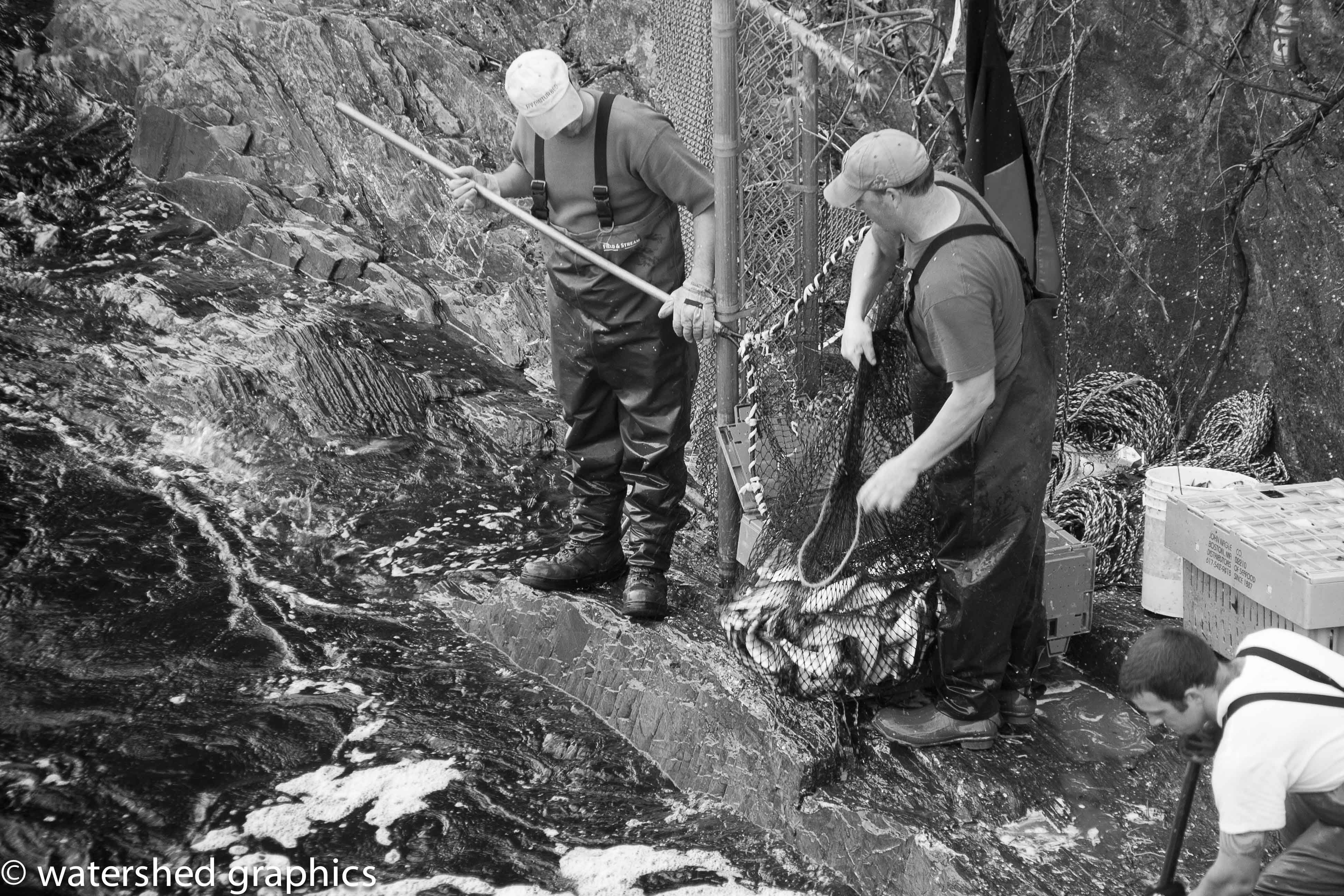 Harvesters 2011 bw-7 June 16, 2014 • 3888 × 2592 • lobstermen harvest with nets below the dam. Fresh alewives are lobsters’ favorite food.